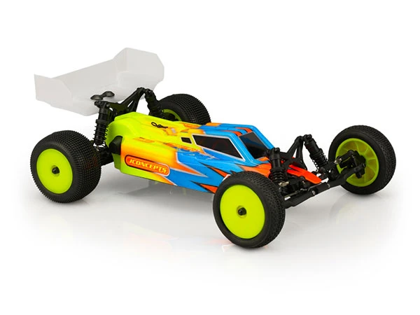With the evolution of racetracks, complicated circuits combining more aggressive jumps and extremely high-speed corners, JConcepts incorporated many features which provide several benefits in the most critical situations. Increased windshield angle provides a steady force upfront during mid-flight wind gusts on large jumps. Forward cab placement changes performance | visible bias which help steering rotation in low traction corners.