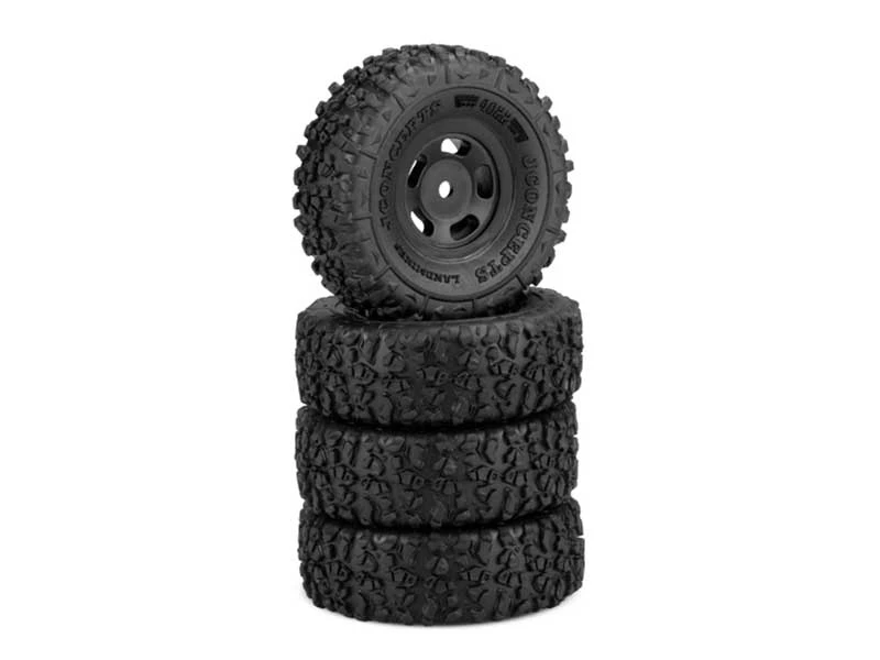 The flexibility of the gold compound combined with the lug arrangement gives the tire a grippy feel but still maintains that all important scale and performance look. The overall height provides plenty of ground clearance for an abundance of terrain and bossed side-wall logos read with beauty and balance. The pre-mounted tires include a soft open cell foam insert capable of standing up to the compound but flexible enough for sharp terrain. Battlefield, watch-out, Landmines are taking over.