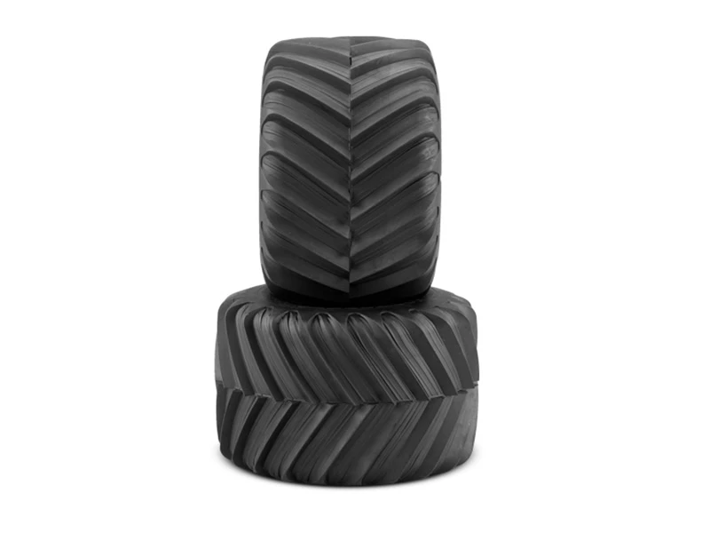 The ultimate monster truck racing tire is now available for a variety of new vehicles on the market. The Renegades named for the hard-core performance design with low-profile racing carcass can now be placed on popular vehicles such as the Losi LMT, Traxxas Maxx, E-Revo and Arrma Kraton. The chevron style lugs has been created with specially designed back-cut tread and shaved carcass areas imitating the real thing. At rotation, the tread still stands tall and provides a hefty edge of forward grip in a variety of conditions. The back-cut section provides a small transition during high-speed corning which conform to changing terrain and obstacles.