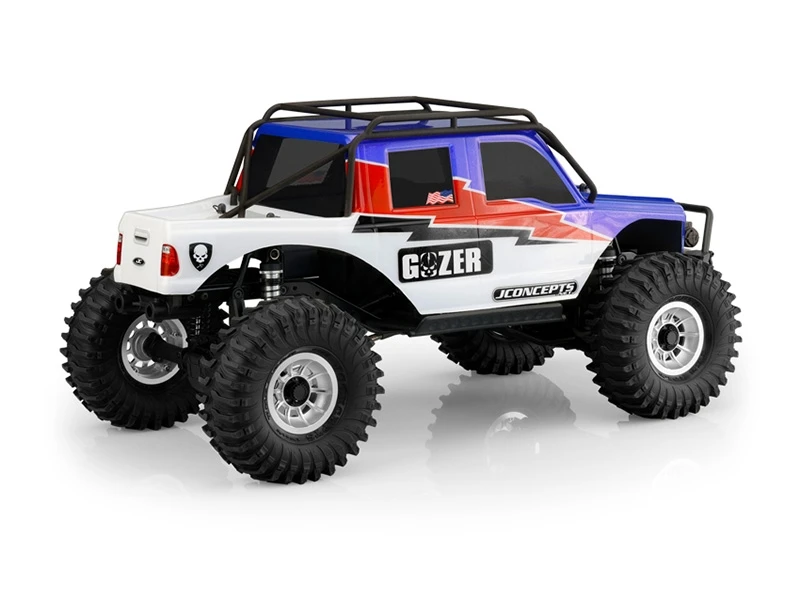 When it comes to off-road nastiness, look no further than the Gozer body for 12.3” wheelbase scale trucks and crawlers. The angular front and rear sections provide major clearance for crawling tires and competition-based rigs. The nature of the 4-door body has a lot of purpose in mind and with a little nip here and a tuck there, the Gozer sits down on a variety of platforms. A large arched front wheel-well dead-ends at the grille section and once covered with included decal, looks quite bossy and stares you down like a piece of heavy-equipment.